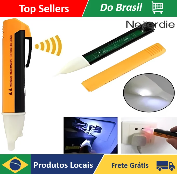 Não precisa ter contato com a parte energizada. Ao encostar o detector próximo de tomadas ou cabos energizados ele emite um sinal sonoro e luminoso, mesmo que o cabo esteja encapado ou o equipamento isolado. Auxilia no trabalho e previne acidentes. Quando a tensão 220 V for existente por duas fases 110 V é possível identificar quando a tomada é 110 ou 220 VAC.