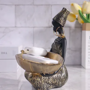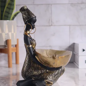 Design Único: A escultura apresenta uma garota africana lindamente detalhada, adicionando um toque único e cultural a qualquer espaço.