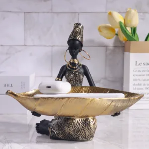 Esta deslumbrante garota africana segurando uma escultura de folha é uma adição única e atraente para qualquer decoração de casa ou escritório, em resina de alta qualidade, a escultura apresenta uma garota africana lindamente detalhada segurando uma folha dourada, a escultura não é apenas uma peça decorativa, mas também um enfeite , perfeito para guardar pequenos itens como joias, chaves ou material de escritório, o design de inspiração vintage e os detalhes intrincados tornam-no um artesanato colecionável que adiciona um toque de elegância e cultura a qualquer espaço.