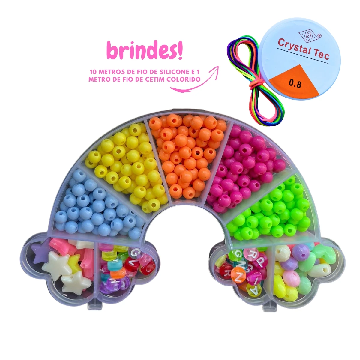 O Kit de Miçangas Infantil é um produto criativo e divertido que estimula a imaginação e a habilidade manual das crianças. Este kit completo contém uma variedade de miçangas coloridas, fios e acessórios, oferecendo tudo o que é necessário para que as crianças possam criar belas pulseiras, colares e até mesmo chaveiros personalizados.