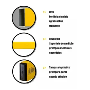 5. Apropriado para canteiros de obras: Medindo a precisão na posição normal ± 0.5 mm/m. Leitura precisa de-20 °C a + 50 °C. Tampas de plástico para proteger o perfil em caso de impacto.