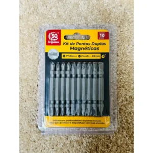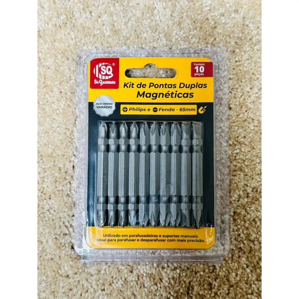 Kit Ponteira Parafusadeira Com 10 Bit Ponta Dupla Magnético